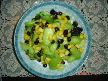 黄瓜三分之一根,胡萝卜半个,火腿肠一根,玉米半斤,盐,油,