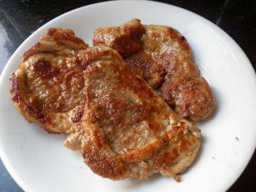 猪扒两块,生抽、盐、胡椒粉、生粉