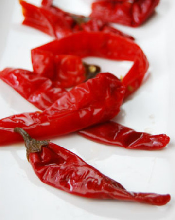 4、加入洗净晾干(一定要晾干,最好风干一天,减少水分含量)以后的新鲜辣椒,辣椒可以选成都地区出产的“二荆条”红辣椒,也可以选灯笼辣椒,可以将辣椒蒂稍稍剪去一部分,便于入味,一定要让辣椒全部浸没在盐水中,泡菜最好能装满泡菜坛子。