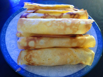 3.蛋卷要趁热卷,冷了就卷不起来了。