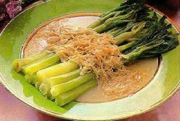 主料:干贝50克,莴笋尾支,葱15克,湿淀粉5克,高汤100克,精盐10克。