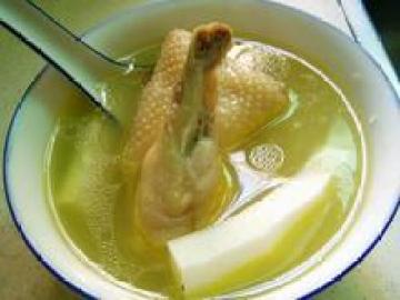 在煲煮乌鸡时要不时撇去浮沫,以保持鸡汤的清纯。