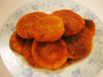 3、捏一小塊一小塊,壓平,下油鍋煎熟即可。
