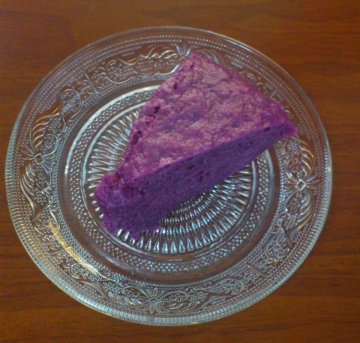 1、紫薯去皮,切块,蒸熟(第一次搞这个,才知道紫薯掉色..)