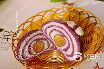 1、蒸熟的紫薯 挤压成茸放酵母粉
