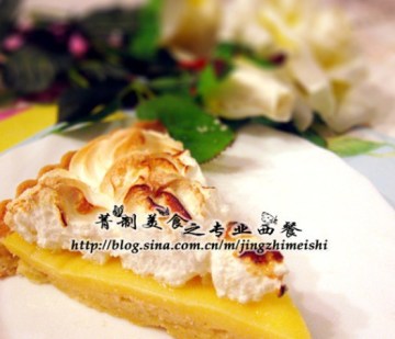 饼皮制作原料:普通面粉400克,盐1克,黄油240克,细砂糖160克,蛋黄2个,水15克,柠檬馅心原料:2个柠檬,350毫升水,60克糖,50克生粉,85毫升水(注明这是另外一份水),3个蛋黄,15克黄油,1克盐,顶部装饰蛋白糖霜(meringue)原料:蛋白180克,生粉33克,细砂糖30克,盐2克