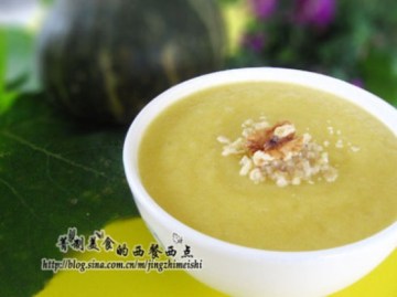 南瓜切小块蒸熟或者用微波炉打熟,然后碾碎。(我一般用打碎机,没有也可以用勺子叉子等,然后加入牛奶,蜂蜜和碎果仁。) 即可食。