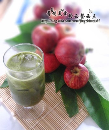 绿茶粉1匙,苹果汁