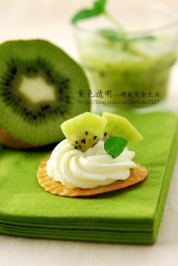 薯愿薯片1包,动物性淡奶油100毫升,薄荷叶少许,白糖20克,奶粉5克,猕猴桃1个