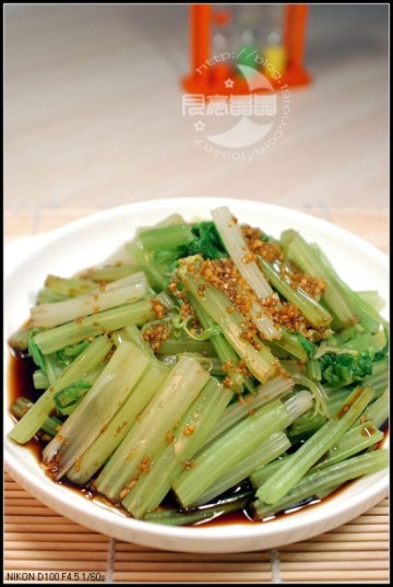 4.姜末,生抽,醋,鸡精,少许糖,放碗中调成汁,倒在芹菜上,淋上香油。