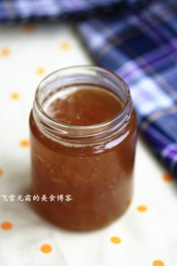 7.作法6煮好的酱汁装入玻璃罐中,盖紧盖子后放至冷却,其可放入冰箱冷藏。