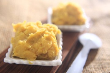 1.削去黄心的外皮,将其切成片状,然后洗净放入锅中蒸熟