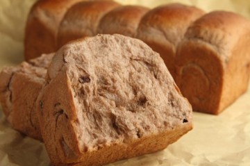 高筋面粉1000g(100%),烫种100g(10%),可可粉30g(3%),红酒650g(65%),砂糖200g(20%),盐8g(0.8%),干酵母15g(1.5%),鸡蛋100g(10%),黄油100g(10%),葡萄干200g(20%)