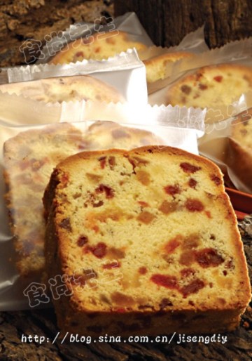 低筋面粉140g,酥油140g,泡打粉3g,绵糖120g,蛋黄3个,蛋清3个,柠檬皮丁40g,纯蜜草莓粒40g,纯蜜苹果粒40g,纯蜜水蜜桃粒40g,牛奶香粉5g,