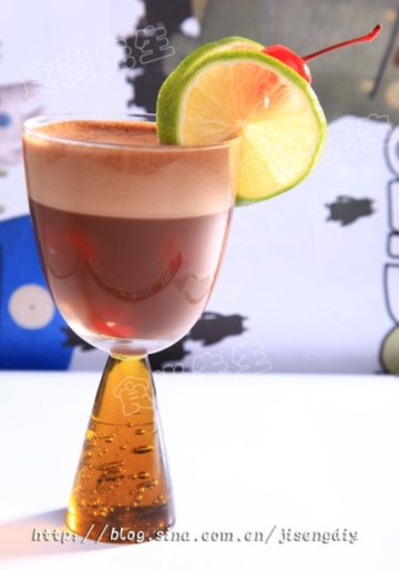 5.先在杯中放几颗用酒浸过的樱桃,然后慢慢倒入调好的4