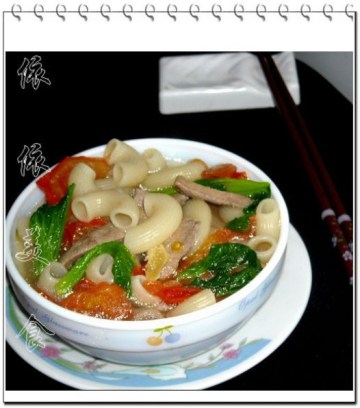 意粉200g,番茄1个,猪肝150g,青菜