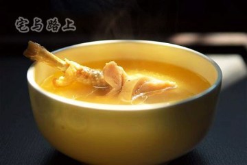 18.先将鸡取出整只放回砂锅,猪肚切成条状