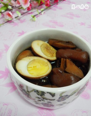 5. 待鸡蛋煮了差不多一小时时放入猪脚, 小火煲1小时左右就好了, 猪脚不用煲太久, 以保证口感弹牙, 有一点嚼劲。