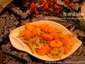 木瓜半个,藕半个,豌豆一小把,盐,橄榄油,淀粉
