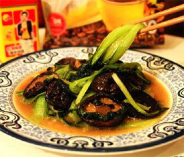 步骤3:锅中放底油,油热,下青菜煸炒一分钟。然后倒入待用的香菇片,放少许盐,翻炒几下就可以出锅了。很清淡好吃的一道菜,试着做下哦