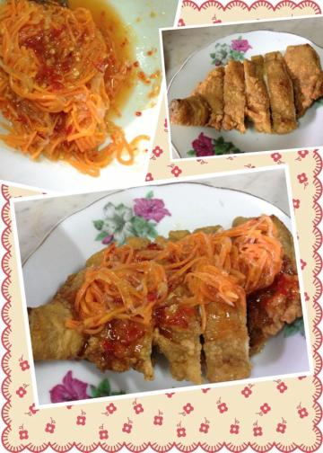 3.这时候,不煮那个麻烦的酱汁,把泰式酱和辣椒圈拌匀就ok啦。