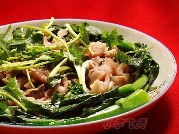 5.把撕好的猪心、香葱丝、元葱放入盘中加上东古酱油,辣椒油,鸡精,拌匀即可装盘。