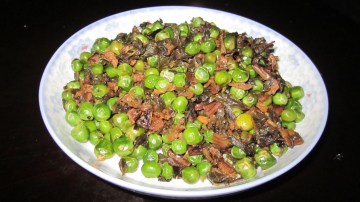 梅干菜50克,雪豆400克,大蒜瓣2瓣,酱油,盐,食用油。