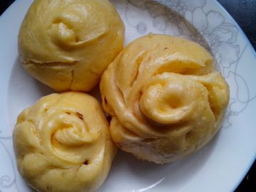 南瓜一小块,豆沙,高粉3杯,酸奶一瓶,鸡蛋一个,盐一小匙,糖2大匙,酵母一中匙,黄油2大匙