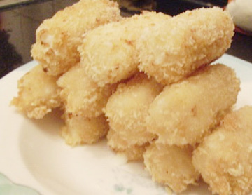 牛奶250毫升,糖40克,炼乳2大勺,玉米淀粉30克,脆皮浆:面粉,水,泡打粉