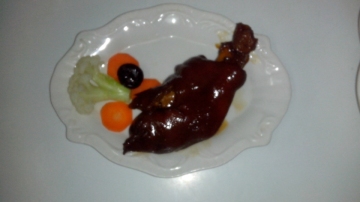 6.酱鸭晾凉后,将肚中的香葱节取出扔掉后,将酱鸭切件装盘就行了^_^