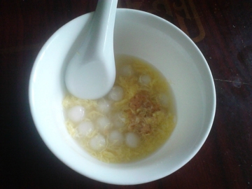 5、煮沸后,在锅中倒入糯米丸子,不需太多,因为丸子受热会发胀