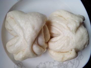 3、把扇形的两边捏在一起就是猪脚了,再放上蒸锅,蒸锅上也刷成油,免得粘锅。发酵20分钟,就可以蒸了,蒸15分钟即可,关火5分钟揭盖。