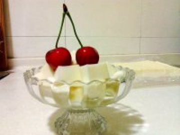 8.切小块装盘食用,可以直接吃,也可以滚点椰蓉。个人觉得滚椰蓉会破坏那种滑嫩的口感,配椰奶和西米吃是最好的