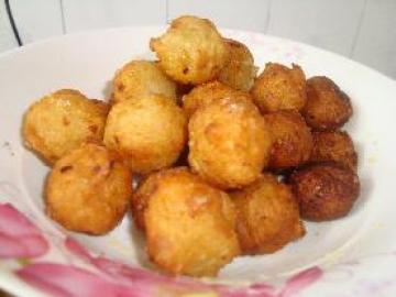 3.锅中加油热至7成熟,放入揉好的饼跟丸子,炸至变色,就可捞出。