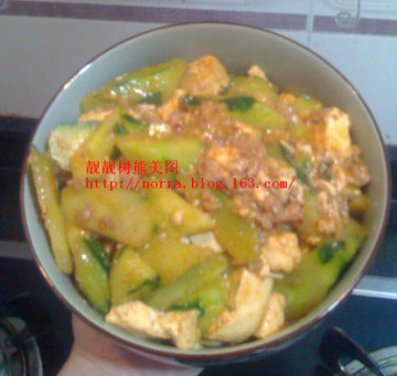 主料:水豆腐500g、肉碎100g、青瓜一根(约250g)(二人份)