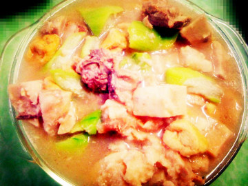第三种:美食美味的咸排骨煲淋毛瓜---节瓜做法
