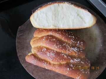 高粉150克,低粉40克,糖40克,牛奶60克,鸡蛋1个,酵母3/4tsp,盐1/4tsp,玉米油(可用黄油)12克