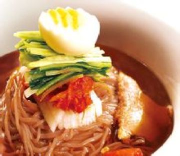 菠萝块,黄瓜切丝,酱牛肉,冷面(在超市里就可以买到)。朝鲜泡菜和专用的面汁。