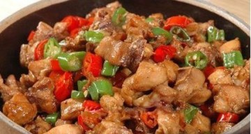 2、加盐稍炒,喷酒淹过鸡块,加盖焖煮。