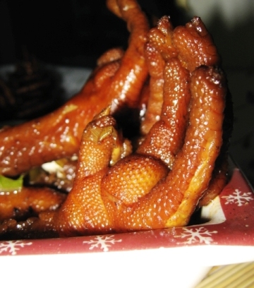 特点:此菜鸡爪红亮,鸡皮松软,食之有灌汤含浆之感,风味独特。