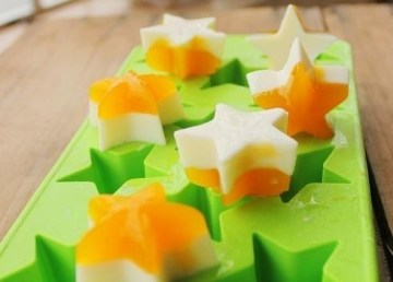 12、用小勺把南瓜汁琼脂液倒入星星冰格,每格半分满;