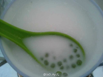 4、大火将水煮开(并非步骤1中的水),倒入冷水中的捞出的西米,然后再倒入椰浆,等再糖水再次煮开后放入冰糖,等糖融了就可以啦~