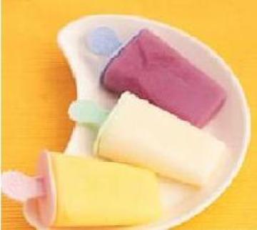 2.将作法1分装入冰棒盒模型中,再插入冰棒棍,移入冷冻库冰冻至结块即可。