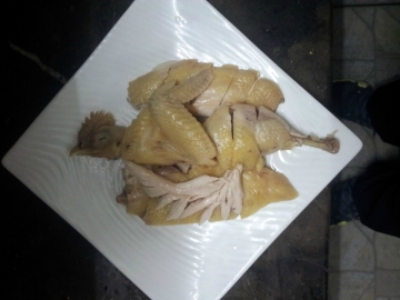 1.杀好的鸡洗净,特别是将它的肺要挖出来,然后烧开水,入锅将其文火慢慢浸熟,大概花了二十分钟。
