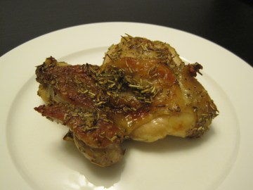 去骨雞腿肉1塊,鹽適量,白胡椒粉適量,料酒1匙,迷迭香2小匙,檸檬汁數滴