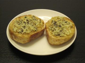 全麥小吐司2片,無鹽黃油適量,鹽適量,羅勒葉粉末適量,蒜2瓣