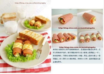 5、还可以用微波炉加热,喜欢奶酪多的可以再火腿片上再盖上一片。
