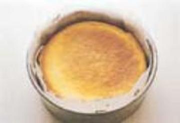 11.取出蛋糕,完全冷却后用保鲜膜连模具包好,放入冰箱冷藏,享用时再脱模。蛋糕底部的垫纸无须取下。