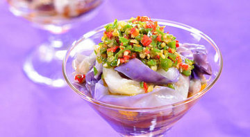紫皮嫩茄子,辣椒 ,姜蒜茸,生抽,香醋,香油,葱花