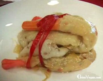 豆腐油皮、糯米、胡萝卜丁、核桃仁、松子、青豆、素海参、南瓜